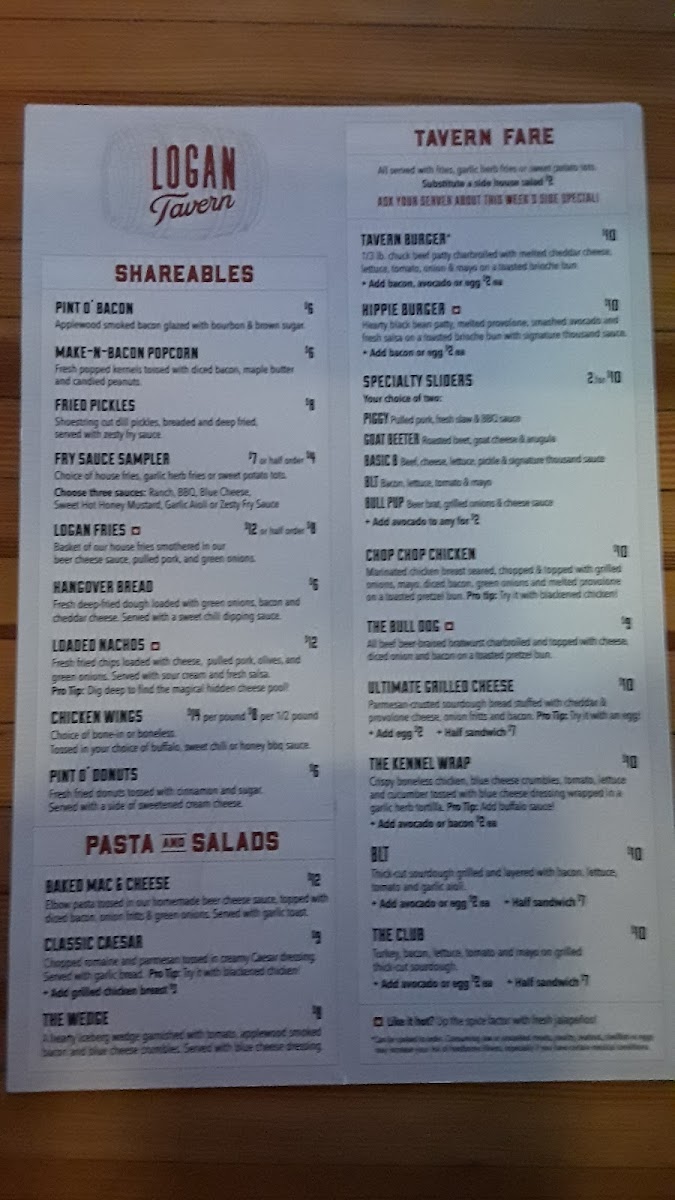 From a reviewer’s perspective, the menu at Logan Tavern, located at 1305 N Hamilton St in Spokane, delivers a well-rounded and approachable tavern-style experience that emphasizes comfort food, shareability, and casual indulgence. The Small Bites section sets the tone with familiar favorites like Chicken Lil Sammie, Classic Grilled Cheese, Hot Diggity Dog / Seattle Dog, and the ever-popular Smash Burger, making it easy to grab something quick without sacrificing flavor. For groups, the Shareables shine, especially Basket O’ Fries, Brittany's Bitchin' Buffalo Fries, Chicken Strips, Chicken Wings, and Chips & Salsa, all designed to be enjoyed at the table with friends over drinks. Lighter options appear in Salads & Pasta with the straightforward House Salad, offering a simple balance to the richer items.
