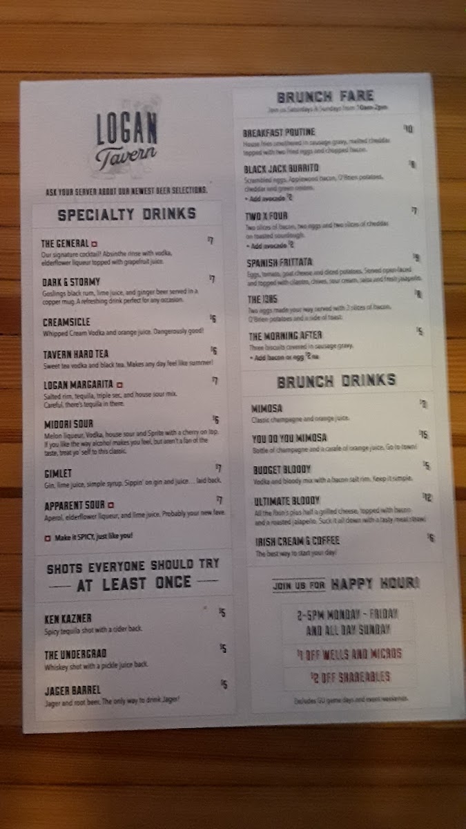 Rounding everything out is a casual Beverages selection featuring Alani Energy, Ginger Beer, Juice, Red Bull, and Red Bull Flavor, reinforcing Logan Tavern’s laid-back, social atmosphere. Overall, the menu feels thoughtfully curated for a neighborhood tavern-familiar, satisfying, and easy to enjoy-making Logan Tavern a dependable choice for casual dining, sharing plates, and classic comfort food in Spokane.